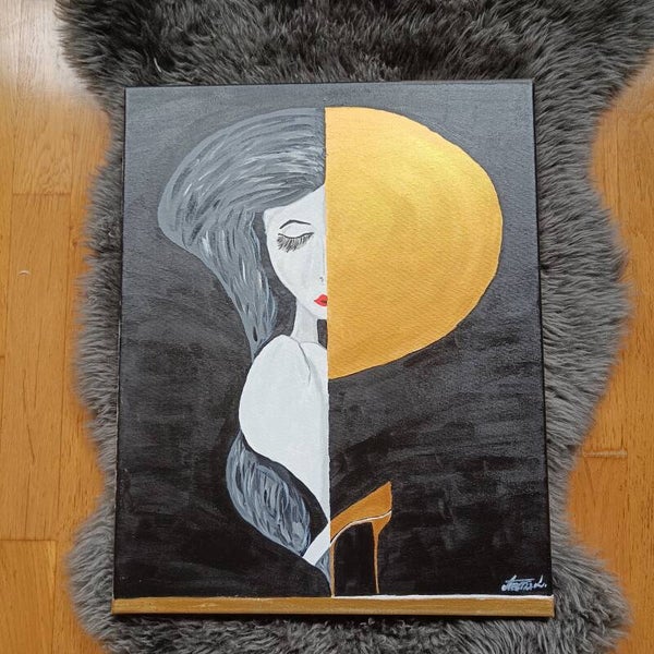 Handmålad canvastavla med inspiration från Askungen och den magiskan skon hon tappar vid tolvslaget. Stl. 40x50cm. Hängs stående.
